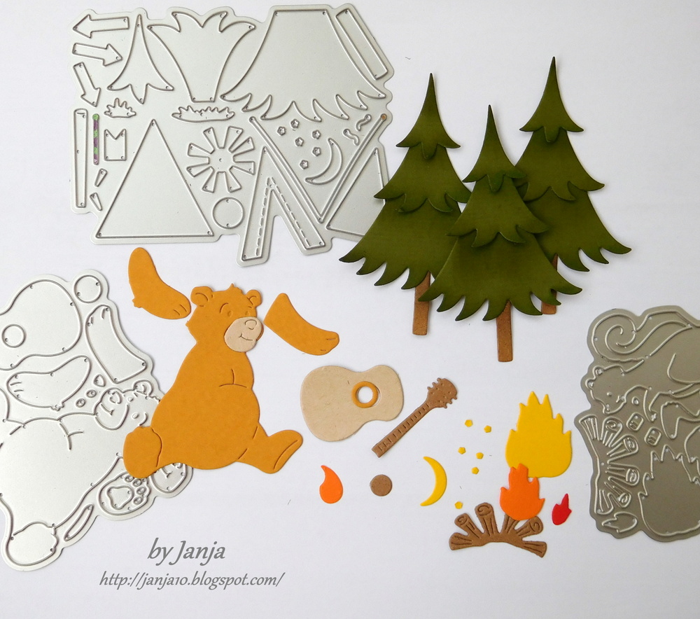 I am continuing with stories from the forest on cards. I used beautiful dies from CottageCutz release - Camping.