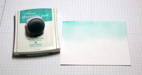 Step 2: I decided to create an outdoor scene for my train. I started it by sponging the teal ink on the top part of my white cardstock.