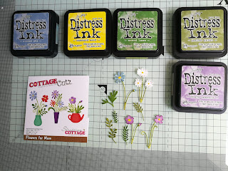 First I die cut the flowers. I used Distress Inks to color it.