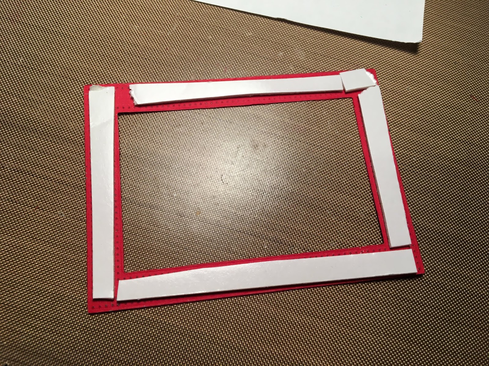 4.  Use and A2 white card stock base, cut a slightly smaller piece of red and then cut a piece of DP just slightly smaller then the red.  Use the Pierced Wide Rectangle Frame die the second from the largest and cut out a red frame.  Cut out a piece of white card stock to go behind the frame