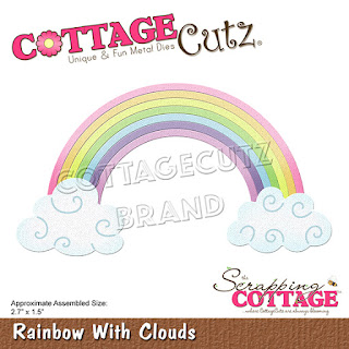 To create my background I cut out several of the clouds from the Rainbow with Clouds die and used it as a stencil at the bottom of my card base. The top of my card base was inked with some Mustard Seed Oxide Ink and splattered with a bit of water.