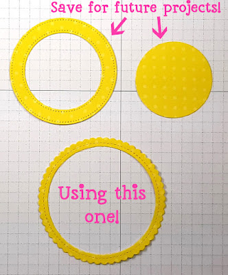12. Die-cut a white circle using the same size (2nd from largest) of the Nested Wacky Stitched Circles set ---- but don't cut the smaller circle from the middle!