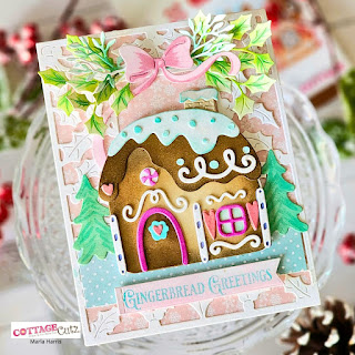 - Ink your die cuts pieces from the Ginterbread Cottage and the folliage and bow from the Vintage Holiday Lantern die.